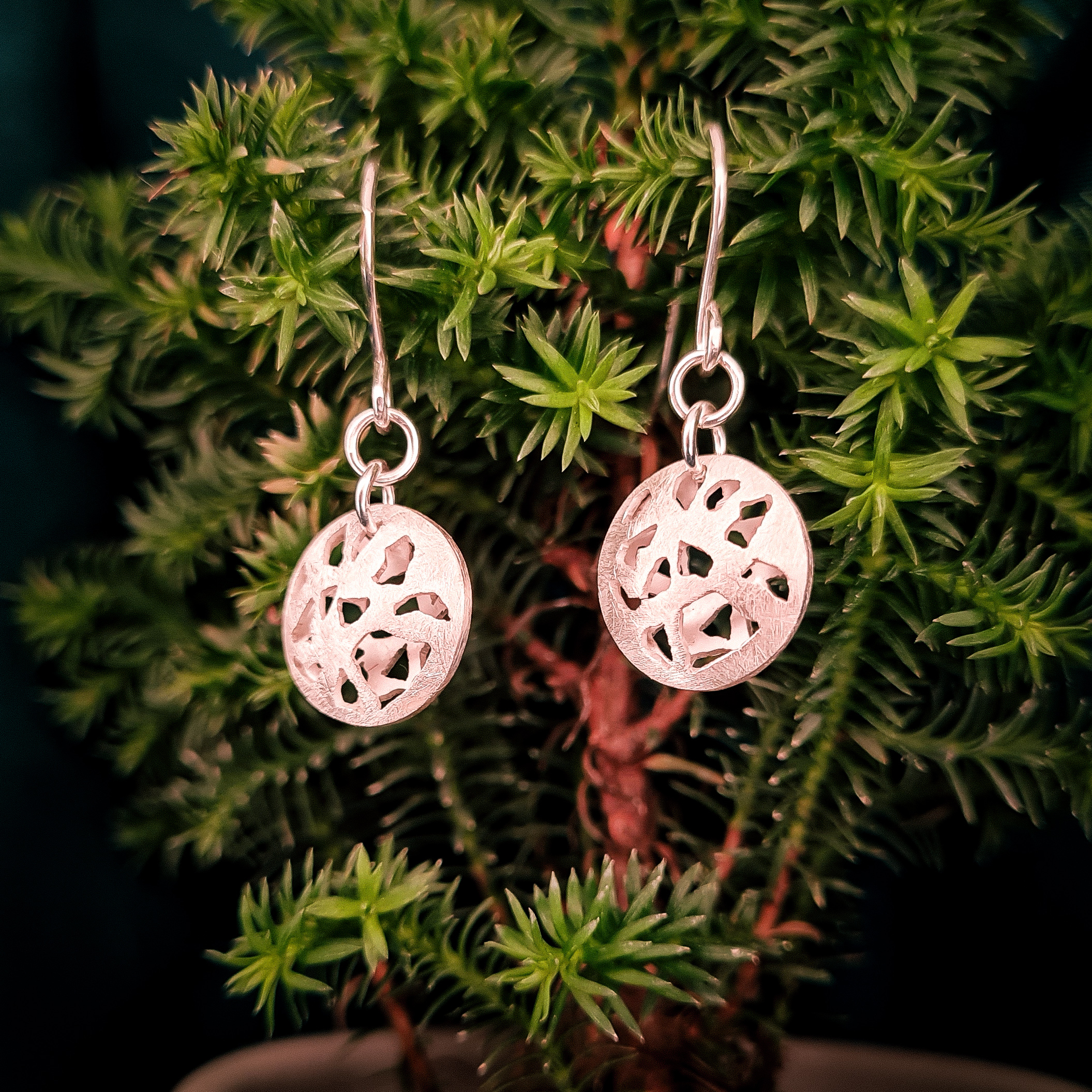 Die Ohrhänger bestehen jeweils aus zwei verbunden Halbschalen, in denen sich Sägemuster befinden.