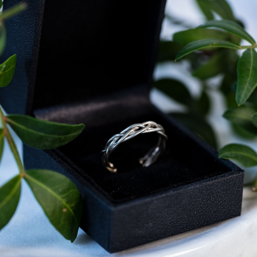Ein geflochtener Silberring aus drei Runddrähten.